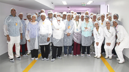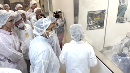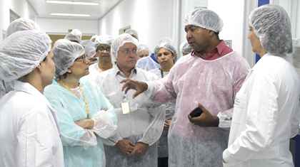 Visita à Produção – Após a abertura, os 42 membros do Conselho presentes à reunião se dividiram em dois grupos para uma visita à fábrica e aos laboratórios de desenvolvimento tecnológico. Na área produtiva, eles puderam acompanhar todas as etapas de produção, desde separação e pesagem dos Insumos Farmacêuticos Ativos (IFA) até a embalagem final.