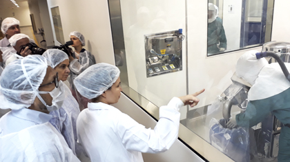 Em seguida, conheceram também a linha de produção do imunossupressor tacrolimo, medicamento proveniente de Parceria de Desenvolvimento Produtivo (PDP) usado para evitar rejeição de rins transplantados. A área já está finalizada e aguarda a liberação da Anvisa para iniciar a fabricação dos lotes pilotos. As novas instalações fabris compreendem ainda as linhas do antirretroviral atazanavir e do anti-parkisoniano pramipexol, cuja conclusão está prevista para 31 de março deste ano.