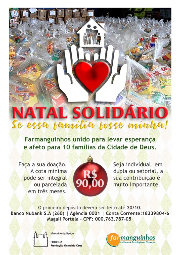 Com nova abordagem, campanha de Natal de Farmanguinhos contará com a solidariedade dos colaboradores para ajudar 10 famílias da CDD que encontram dificuldades para sobreviverem à pandemia