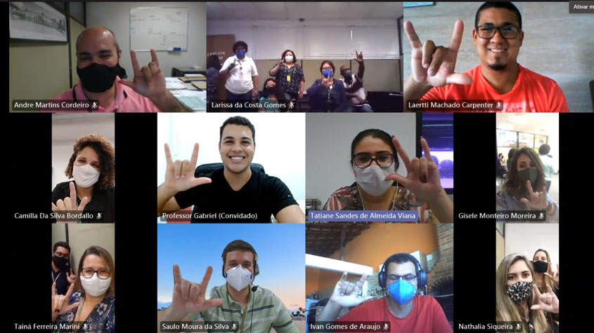 Promover a cultura da inclusão e ampliar a comunicação entre os colaboradores da unidade foram os principais objetivos do curso de Introdução à Língua Brasileira de Sinais (Libras), promovido pelo Departamento de Desenvolvimento de Recursos Humanos (DDRH), da Vice-diretoria de Gestão do Trabalho (VDGT). Ministrada de forma híbrida (algumas aulas presenciais e outras remotas) pelo professor e intérprete Gabriel Sampaio, a turma teve oito encontros e contou com a participação de 18 profissionais de áreas diversas e que atuam diretamente com os trabalhadores surdos.