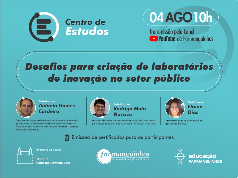 A palestra será no dia 04 de agosto, às 10h, no canal de Farmanguinhos no YouTube