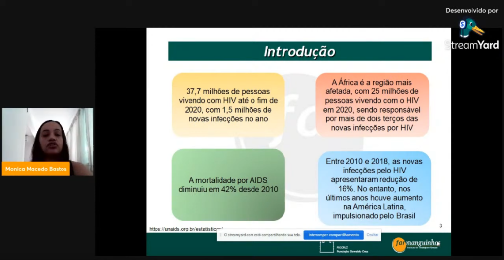 Em encontro virtual, no Dia Mundial de Luta Contra a Aids, a pesquisadora Monica Bastos apresentou os novos desenvolvimentos para a erradicação da doença