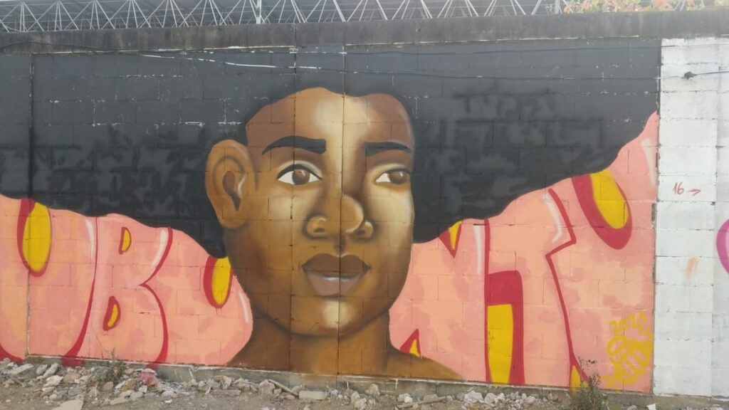 “Eu vim de Coelho Neto para participar deste evento lindo. Eu quis homenagear as mulheres negras e a união das pessoas negras através do UBUNTU. A minha arte foi uma forma de lembrar da nossa presença no território”, explica Cynthia Aith.